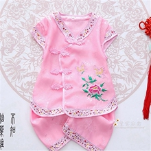送鞋男女宝宝唐装夏儿童套装百天周岁服肚兜3件套纯棉婴幼儿古装