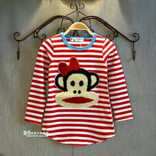 16童装春秋装女童长袖T恤 韩版时尚条纹猴子休闲百搭打底衫Q13071