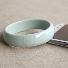手上功夫原创手工雕刻荷花爱莲说陶瓷手镯女款优雅民族风礼物包邮