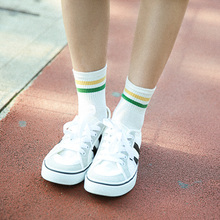 韩版二杠条纹短袜女学院风纯棉中筒袜子运动短筒袜春夏季时尚女袜