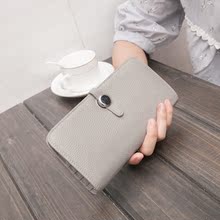2016欧美风新款简约荔枝纹牛皮长款钱包女抽带真皮薄款韩版皮夹潮