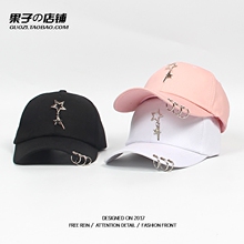 铁环个性棒球帽女春夏季弯檐鸭舌帽吊坠遮阳帽弯檐情侣朋克嘻哈帽