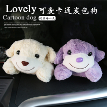 车内饰用品米黄色可爱卡通炭包狗毛绒竹炭狗小摆件汽车公仔
