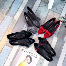 韩版蝴蝶结尖头浅口单鞋女2017春季新款复古百搭平底鞋甜美女鞋潮