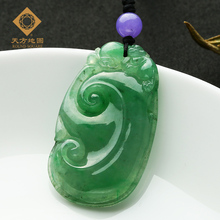 方圆珠宝 天然A货翡翠 糯种菠菜绿翡翠如意挂件 吊坠 带证书包邮