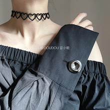 DOUDOU 极简 暗黑风少女心 爱心黑色镂空项圈 颈链 锁骨链