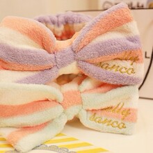 超美超大蝴蝶结梦幻色条纹金丝线刺绣束发带化妆