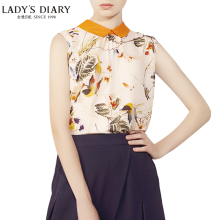 LADY’S DIARY/女性日记2016夏装新款百搭雪纺印花背心无袖衬衫女