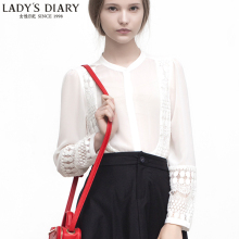 LADY’S DIARY/女性日记2016秋新款长袖女衬衫修身蕾丝上衣女衬衣