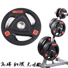 环保无味PU举重健身器材手抓黑色纯钢包胶杠铃片奥杆大孔组合套装