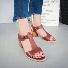 粗跟高跟罗马凉鞋女式性感型夏天新款中跟百搭一字扣带女性鱼嘴鞋