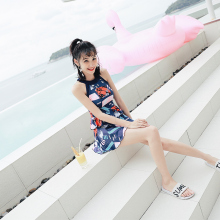 亦美珊泳衣女分体聚拢温泉小香风平角裙式清新聚拢小胸泳装