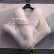 进口水貂披肩整貂斗篷外套狐狸毛领裘皮大衣海宁皮草女披风水貂毛