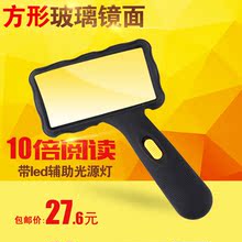 普拉迪方形放大镜10倍带led灯阅读 手持式老人看报阅读用放大镜