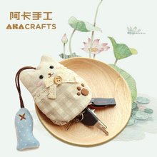 阿卡手工成人自制作diy礼物布艺猫咪钓鱼钥匙包创意棉麻材料包