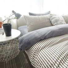 简约条纹棉加绒床上用品四件套天鹅绒床单被套短毛绒床笠款法莱绒