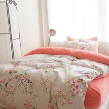美式简约全棉床上用品四件套学生单人床被套 纯棉田园碎花三件套