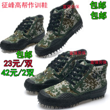 包邮征峰高腰迷彩鞋民工劳保解放胶鞋男迷彩作训鞋高帮学生军训鞋