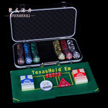 包邮 德州扑克21点套装 200个筹码+桌布+庄码+扑克 +铁盒装