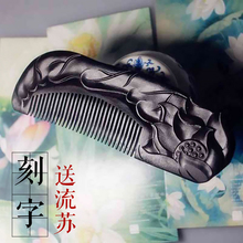 黑檀木梳子浮雕花定制刻字紫光檀木送女友老婆祥云生日周年礼物