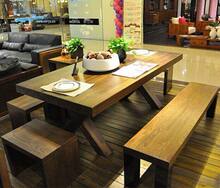 美式复古实木餐桌椅组合长方形咖啡长桌复古餐桌6人办公桌工作台