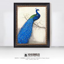 绘绘 美式装饰画有框画欧式客厅背景三联画玄关挂画卧室壁画孔雀
