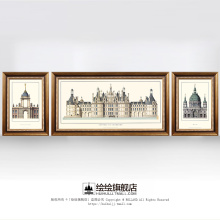 绘绘美式装饰画客厅沙发背景墙三联画书房办公室玄关挂画有框建筑