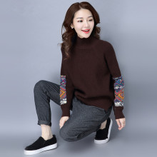 女士毛衣套头中长款加绒加厚秋冬长袖宽松大码低领韩版保暖打底衫