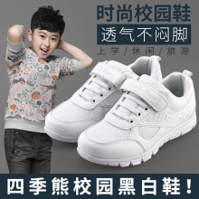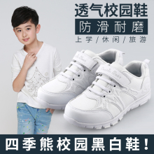 四季熊女童运动鞋儿童白波鞋男大童白色运动鞋耐磨软底学生休闲鞋