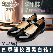 四季熊女童黑色皮鞋中大童白色女孩公主鞋软面儿童单鞋学生小皮鞋
