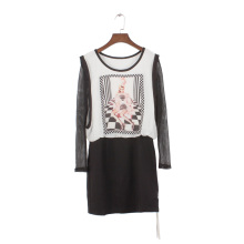 LBY专柜剪标女装2017夏圆领短袖花色裙子雪纺拼接连衣裙女Y9480次