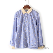 紫系列冬装正品女装米金色蕾丝领清新时尚小衫文艺雪纺衫 27769