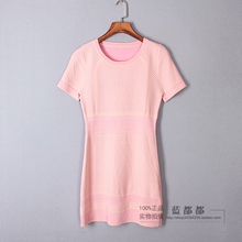 摩系列春秋装专柜正品女装桃红色圆领套头修身短袖连衣裙 20099