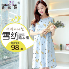 肯娜奴孕妇连衣裙夏季时尚韩版孕妇夏装中长款潮妈印花雪纺孕妇裙