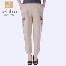 中老年女裤春秋裤子女妈妈长裤纯棉中老年女装夏装纯棉绣花老年人