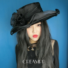 CREAMPP 复古网纱花朵 气质遮阳度假太阳帽 大檐礼帽女帽 4色特惠