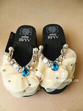 全国包邮费DIY缝制海边度假女款人字拖水晶沙滩鞋水钻坡跟拖鞋