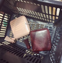 独家新款 韩国拉链短款钱包正方形简约复古拉链女士小零钱包+流苏