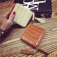 新款正方形钱包小鳄鱼纹流苏钱包挂饰短款两折拉链复古简约女