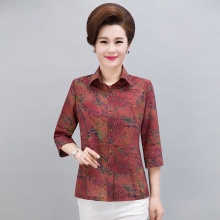 2017春夏中老年妈妈装中年妇女装七分袖衬衫大码修身碎花上衣t恤