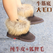 试用中心官方推荐冬牛皮狐狸毛5854狐狸毛雪地靴女短筒裸靴