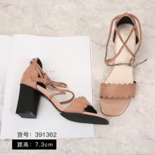 东帝名坊高跟凉鞋女夏2017新款韩版百搭一字带扣粗跟包头百搭凉鞋