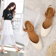 2017夏季新款百搭韩版学生包头一字带凉鞋粗跟女中跟单鞋罗马女鞋