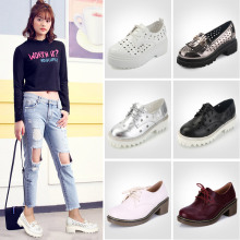 东帝名坊春秋女鞋小皮鞋女英伦风大码女鞋休闲鞋女防滑中跟单鞋女