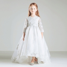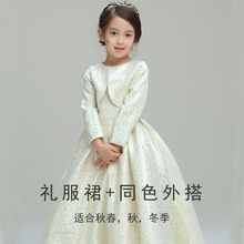 韩版长款韩高档儿童礼服长袖婚纱裙花童礼服公主裙女童礼服拖尾裙