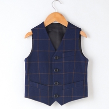 六一儿童小马甲男童马甲花童藏青格子马夹西装大童钢琴演出服马甲