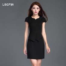零式起凡2016夏装新款修身显瘦简约黑色中长款连衣裙