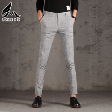 莱衣款 春天男士细条纹休闲裤 青年弹力小脚长裤子中腰男装潮流裤