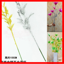 丝网花手工材料金银仿真蚕丝网花金粉落地百合牡丹花杆铁丝花枝