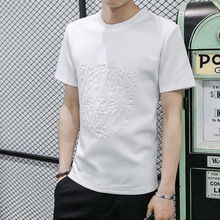 2016新款短袖t恤 男装圆领夏季上衣修身立体印花男士打底衫半袖潮